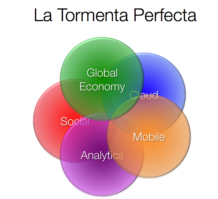 Estas cinco “fuerzas” (incluyo la economía global) forman una tormenta perfecto lo cual esta influyendo como los gobiernos interactúan con ciudadanos y como empresas en industrias como servicios financieros, salud, comercio y automóviles, entre otros, están consiguiendo ventajas competitivas.