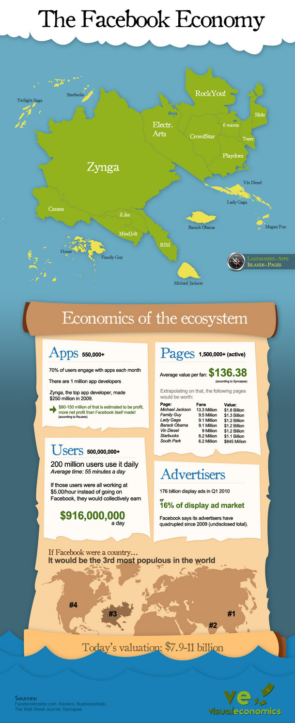 Abajo hay una version mas grande del Infographic de VisualEconomics sobre la economia de Facebook: